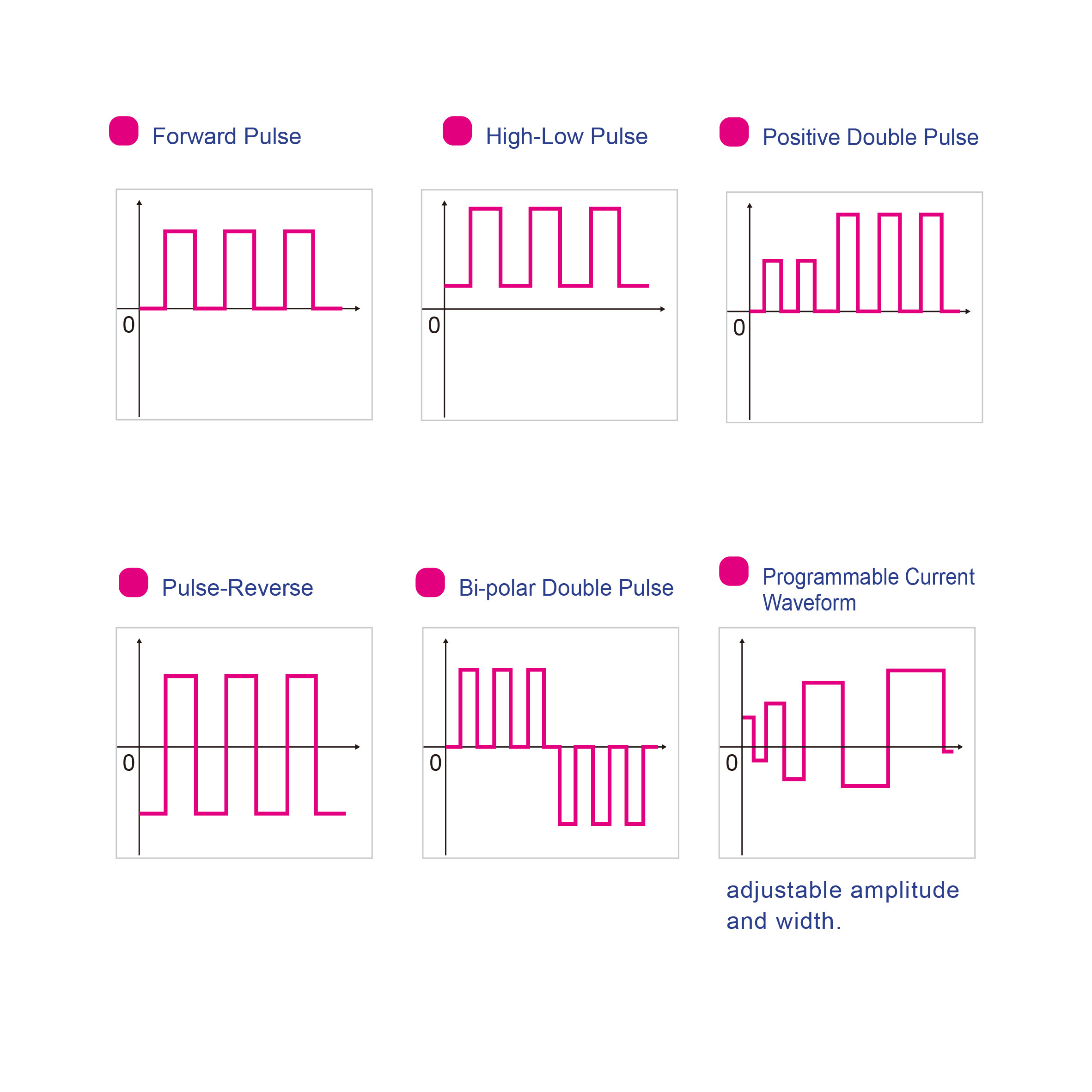 Forward pulse / High - Low pulse / Positive Double Pulse / Pulse-Reverse / Bi-polar Double Pulse |
