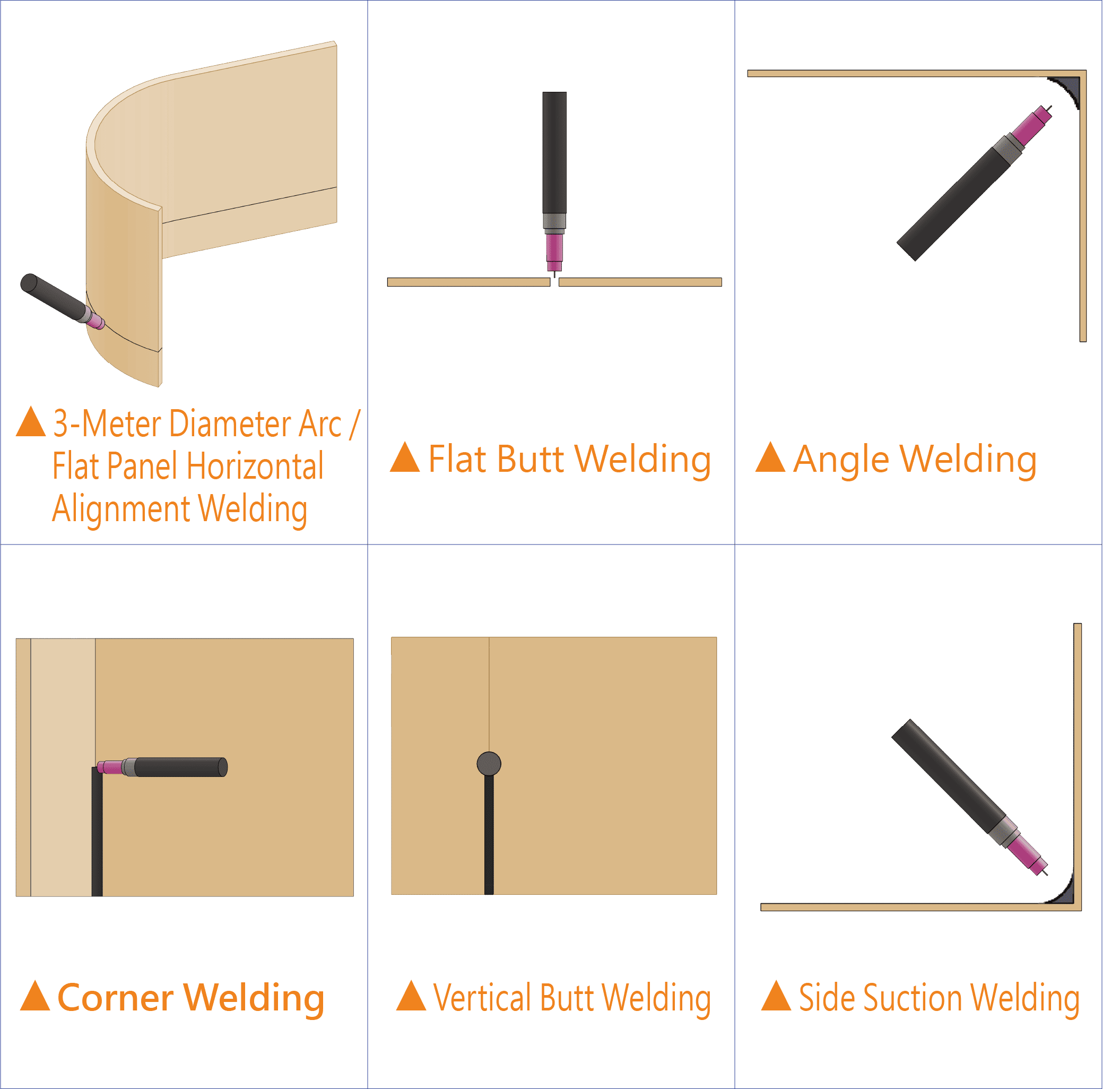 - It is widely used in Flat Fillet Welding, Vertical Fillet Welding,Flat Butt Joint, Horizontal Butt Joint, Vertical Butt Joint and Overhead Welding.